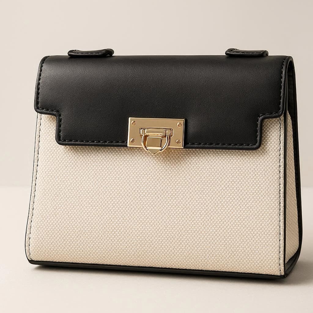 شنطة أنيقة باللونين الأسود والبيج